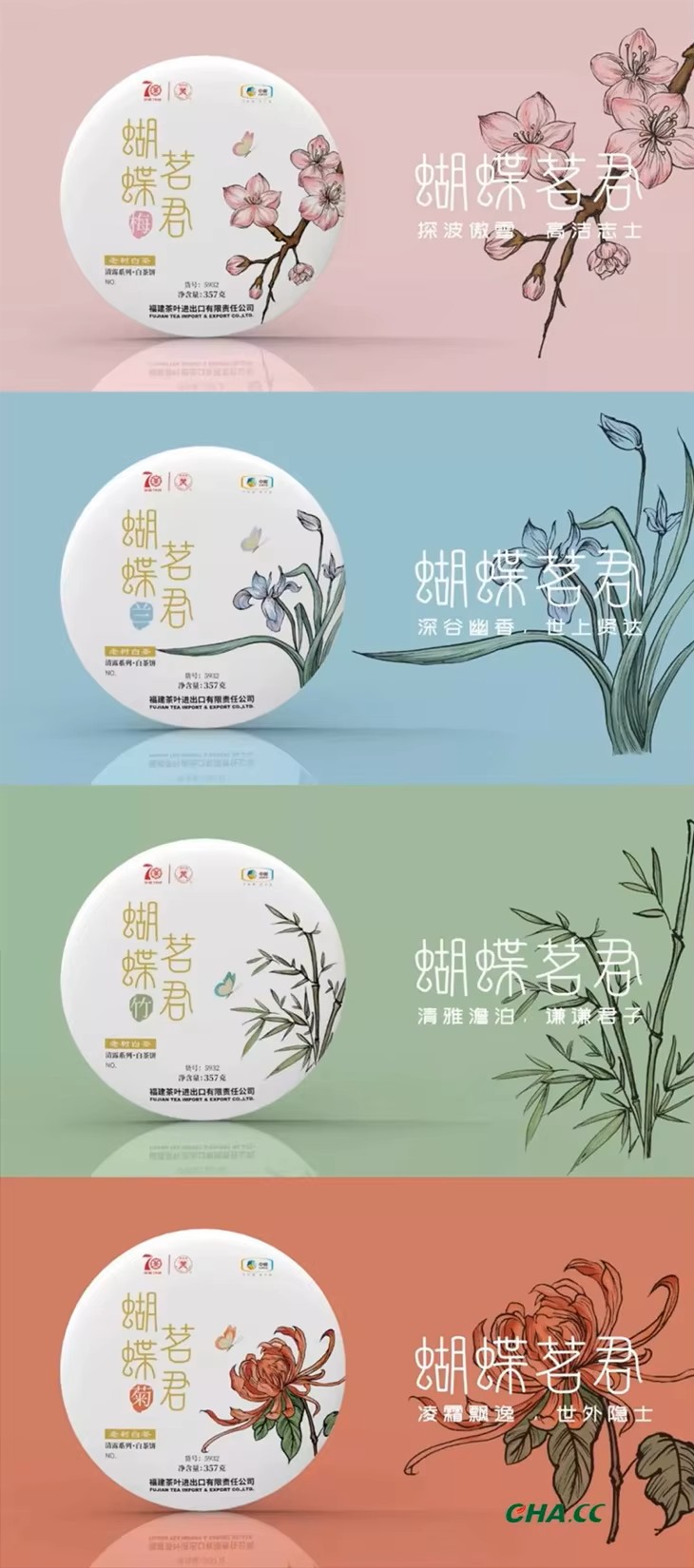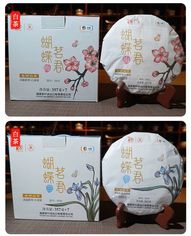 This «Butterfly» series is presented in the image of four flowers, «Plum», «Orchid», «Bamboo» and «Chrysanthemum». Demonstrate the characteristics of white tea «QING», «RUN», «HE» and «YANG». Strictly select white tea and white peony as raw materials, add the old materials to complete the configuration, the buds and leaves are huge, and the tea soup is clear and bright. When you drink, your mouth is filled with mellow and sweet taste.