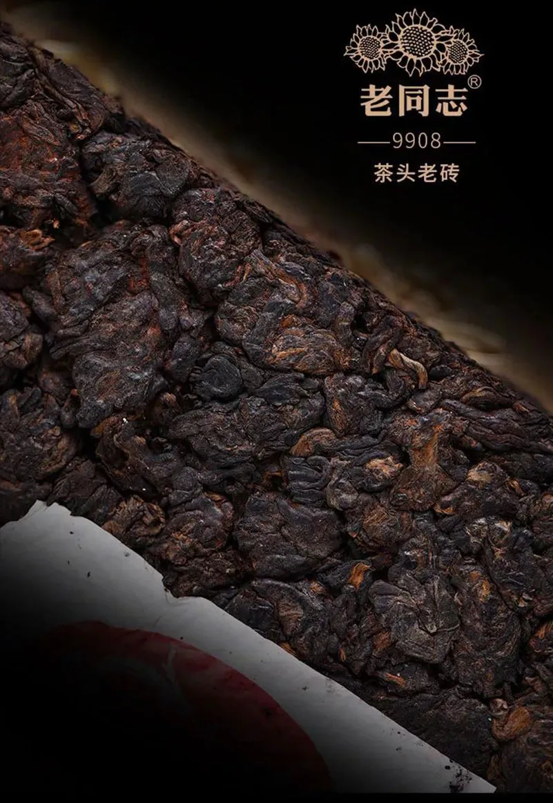 Чайные головы, образовавшиеся при ферментации чайного сырья, собранного в регионе Юньнань, спрессованы в форме брикета весом 500 грамм.